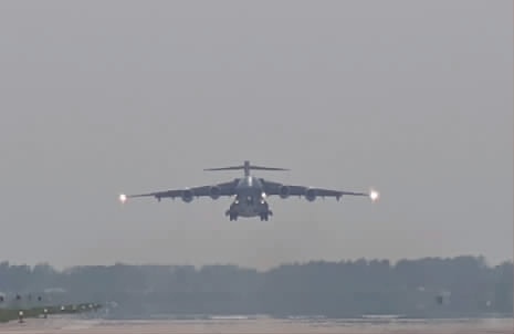 中国空军1架运-20B军用大型运输机4月20日下午从华中某机场起飞,执行赴韩国接迎第十三批在韩志愿军烈士遗骸回国任务。