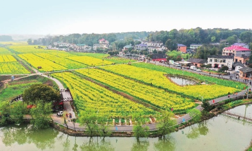 新农村,新生活。有一种幸福,叫家门口就是公园。在离城区最近的铜官江边,太丰垸现代农业公园3400亩彩色油菜花和紫云英正在竞相绽放。