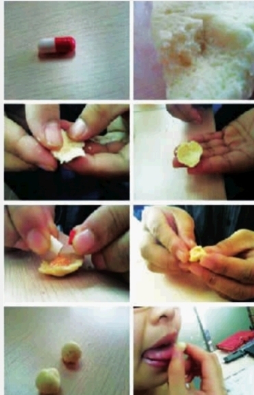 办法是有的 因为担心问题胶囊,杭州黄老太选择将胶囊“生吞活剥”,把胶囊一颗颗拧开,捏着鼻子直接往下吞药粉。结果她一阵猛咳还觉得嗓子火辣辣,检查后发现食道被药粉灼伤了。医生提醒:胶囊药最好不要剥开吃,特别是肠溶性和缓释胶囊。于是,网友“色色猴”发明了“馒头式胶囊药吃法”:买一馒头(包子发糕也可以,要热软),捏成凹片,拧开胶囊倒药进去捏口成团,然后吞服——没有什么困难能够难倒英雄的中国网民! |