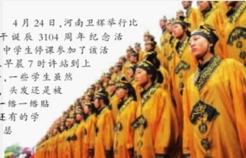 这活动 4月24日,河南卫辉举行比干诞辰3104周年纪念活动,数百名中学生停课参加了该活动,冒雨从早晨7时许站到上午10时许,一些学生虽然披着雨衣,头发还是被雨淋湿,一绺一绺贴在额头,还有的学生在雨中瑟瑟发抖。 |