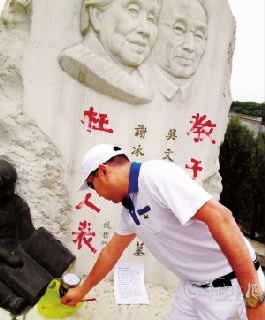 背景 近日,著名女作家冰心和丈夫吴文藻在京纪念碑被人用红漆涂上八个大字“教子无方 枉为人表!”调查发现,毁坏冰心墓园的是其孙子吴山,矛头对准的则是冰心的儿子吴平。吴山说:“我的父亲对我的母亲极不公道。我这样是为了我的母亲,想引起社会重视。”