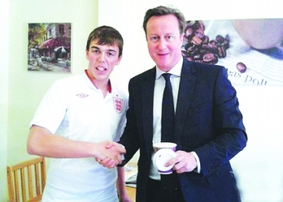 首相大“失”身份 日前,英国首相卡梅伦前往普利茅斯,路过一家咖啡馆,下车买咖啡。他要求女店员席拉给他一杯咖啡,席拉让卡梅伦排队等候。等待10分钟后,助手赶紧到隔壁面包店买了甜甜圈和热茶。席拉发现他带着别家的餐点进店,又数落他一顿。卡梅伦厚着脸皮,继续跟店里的人握手拍照。图为卡梅伦与顾客合影。 |