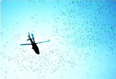 飞机投放诗歌 6月26日,伦敦遭遇空袭。不过直升机空投的不是炸弹,而是10万首印在书签上的诗。这些诗的作者包括204个奥运国家的300位诗人。伦敦是“诗雨”(Rain of Poem)计划第六个城市,此前该计划曾在德国、西班牙、波兰、克罗地亚和智利举行。“诗雨”何时空袭中国? |