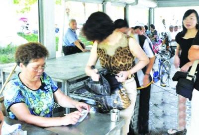 女子沿街发钱 7月7日,温州街头,两个三四十岁的女人手提装满钱的黑色袋子,开着红色小轿车,沿大街小巷寻找伏茶点送钱,不愿拍照、不愿透露姓名。两人仅在东门红日亭的伏茶点就捐款6万元。 |