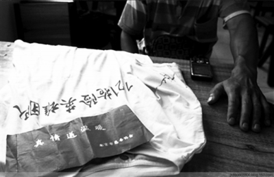 不一样的人心 152名农民工在7月21日北京暴雨夜救出上百名被困游客,他们每人获慈善家和媒体的数千元奖励。但钱发下后又被工地收回,连发放的新毛巾被都被没收了。工地称此举为留人,月底将发放。一工人不愿交钱被辞退。图为工人展示装善款的信封和崔永元签名赠送的T恤。 |