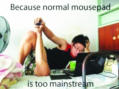 不一样的姿势 这是学生宿舍骨灰级网虫推荐的最舒服的姿势。鼠标垫神马的弱爆了。 |