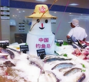 背景 8月26日,江西南昌某超市在海鲜柜台摆出一雪人,它头戴渔夫帽“垂钓”,胸口标着“中国钓鱼岛”,以一种新的形式保钓。