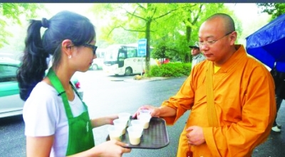开张 9月21日,上海统一星巴克咖啡有限公司官方微博“星巴克江沪浙”发布消息:杭州灵隐寺店将于翌日开张迎客。消息一出,网上一片沸腾。一网友调侃说:进去这家星巴克店后,服务生会微笑地问:施主,您是要大“悲”还是超“大悲”?当然,也会有顾客问:“我能续悲吗?” |
