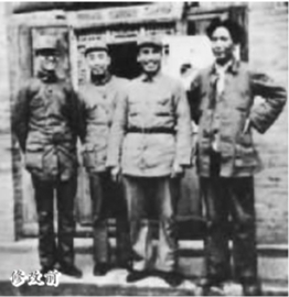 我第一次看到这张三人照是在北京一张报纸上,我给报社打电话反映这照片不对,又根据他们的回答找到了某出版社。出版社刚开始表示他们不会错,但我家里有原始照片,是新华社成立30周年的时候给我们的一张四人照片。我母亲张越霞1979年3月病逝后,时任全国供销合作总社副主任的程宏毅同志到我家慰问时,问我们有什么要求时,我拿出四人照片和周恩来逝世一周年某杂志登载经过篡改后的三人照片,给程宏毅同志看,他看过以后立即指出四人照是原照,而三人照是经过修改的,我们当即提出要求尊重历史恢复照片的原貌。程宏毅同志当即答应回去后向党中央反映。1979年6月,中国人民革命军事博物馆、中国革命博物馆等都把四人照放大成一人多高的巨幅照片陈列,以示拨乱反正。
