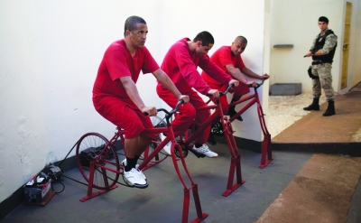 奇招 巴西Santa Rita do Sapucai监狱今年推出一个创新项目,囚犯们可以通过制造绿色能源来获得减刑机会。他们要做的就是不停地蹬与发电机相连的自行车以产生电量,发电机可以为充电电池充电,电池则用于为市中心部分街区的街灯供电。囚犯们每蹬16小时自行车可以获得减刑1天。 |