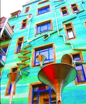 奇楼 据英国《每日邮报》报道,近日德国诺伊施塔特市的一处“音乐楼”成为热门旅游景点。该楼的雨漏被楼内的一名雕刻家和一名设计师改造成为九曲回环的乐器,一旦下雨,整栋楼便会奏出叮咚的乐曲。雕刻家阿奈特称在彼得堡家中喜欢听下雨时楼外下水管的“雨水交响曲”,并因此受到启发。 |