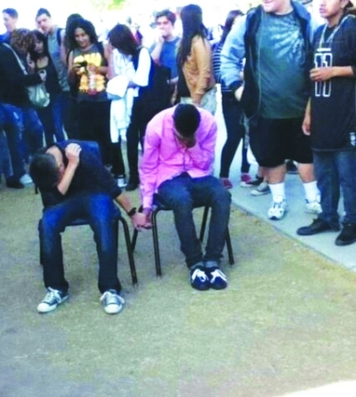 奇观 美国某校的两名男生在课堂上打架后,校方经研究给了他们两个选择:1.被勒令退学。2.手拉手在学校的院子里坐九天。他们选了这个…… (本版图文选自《扬子晚报》、《南方都市报》、《看天下》等) |