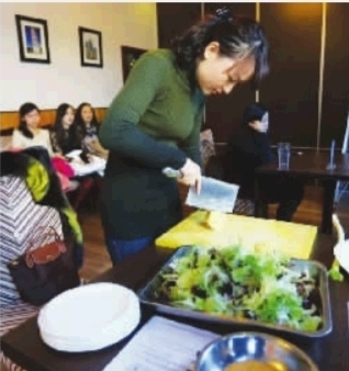 背景 12月23日,数十名佳丽在北京三里屯一餐厅里参与中国企业家单身俱乐部组织的亿万富豪的准女友面试,据悉,全国报名女孩累计超过6万人,按照当天的海选程序,应征者需经过形象、才智、生活、情感四层考核,初选入围者还将进行10项深度测试分析及家访,胜出者才能参加明年在丽江举行的豪华派对。图为切土豆丝考试。
